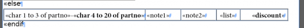 «char 2 to 500 of partno»statement into it, and selecting all of first row’s cells and choosing Table > Merge Cells.